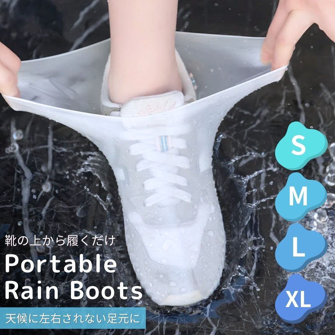 レインブーツ ポータブル長靴 半透明 靴カバー 両足用 ゴム製 シューズ