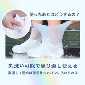 砂場遊びや雪の日にも役立ちます。雨が上がって長靴のままでは恥ずかしい。そんなときはシューズカバーを脱ぐだけです。使わないときは折り畳んで収納できます。不意の雨の備えにカバン、職場や学校のロッカーなどに入れておくと便利です