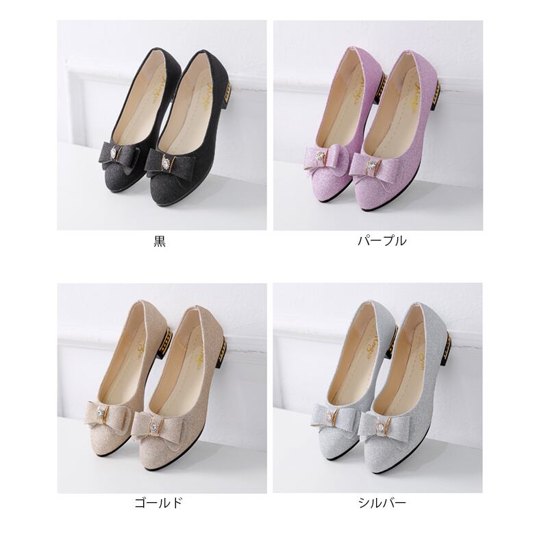 初回送料無料 レディース パンプス ミュール 靴 ポインテッドトゥ リボン フラット キラキラ