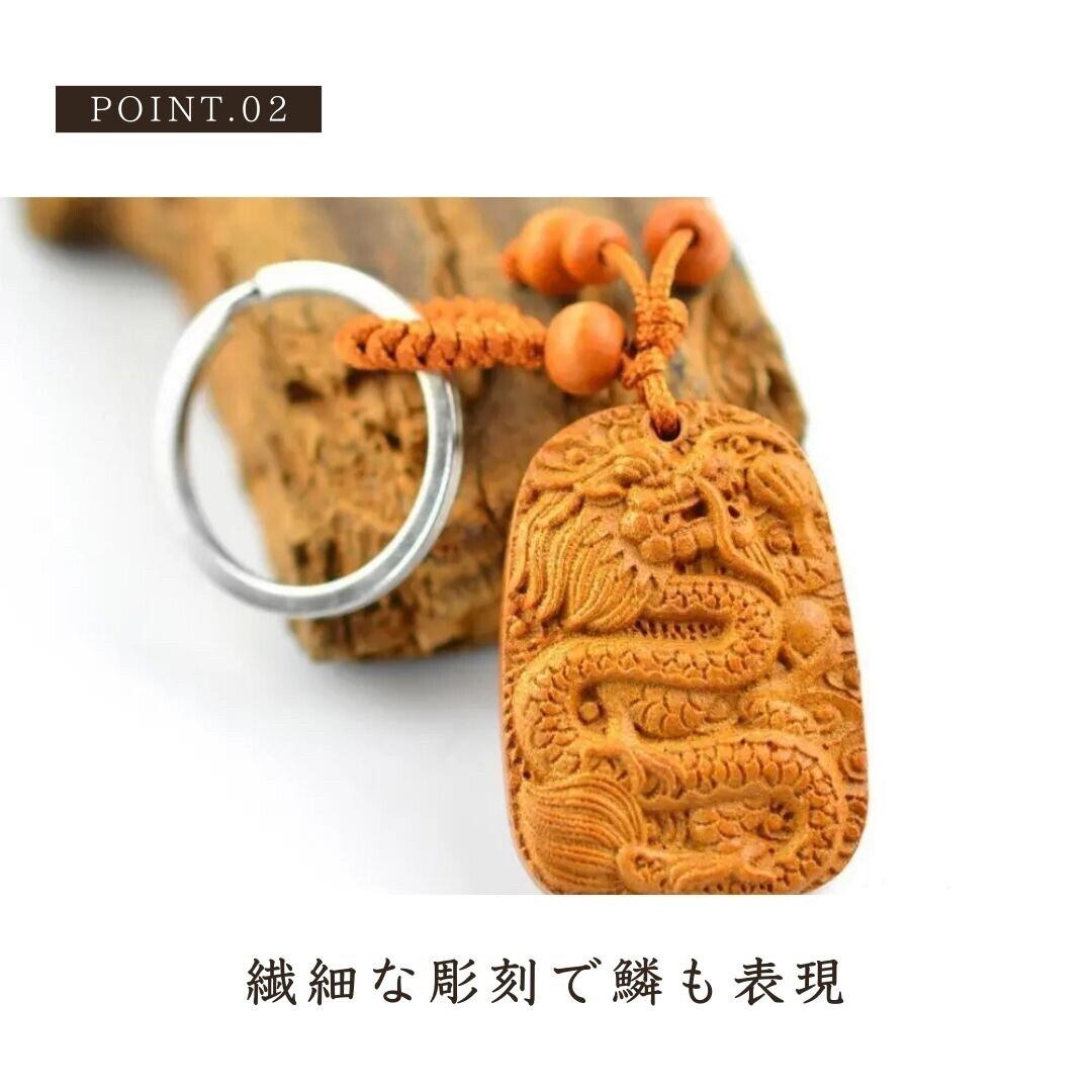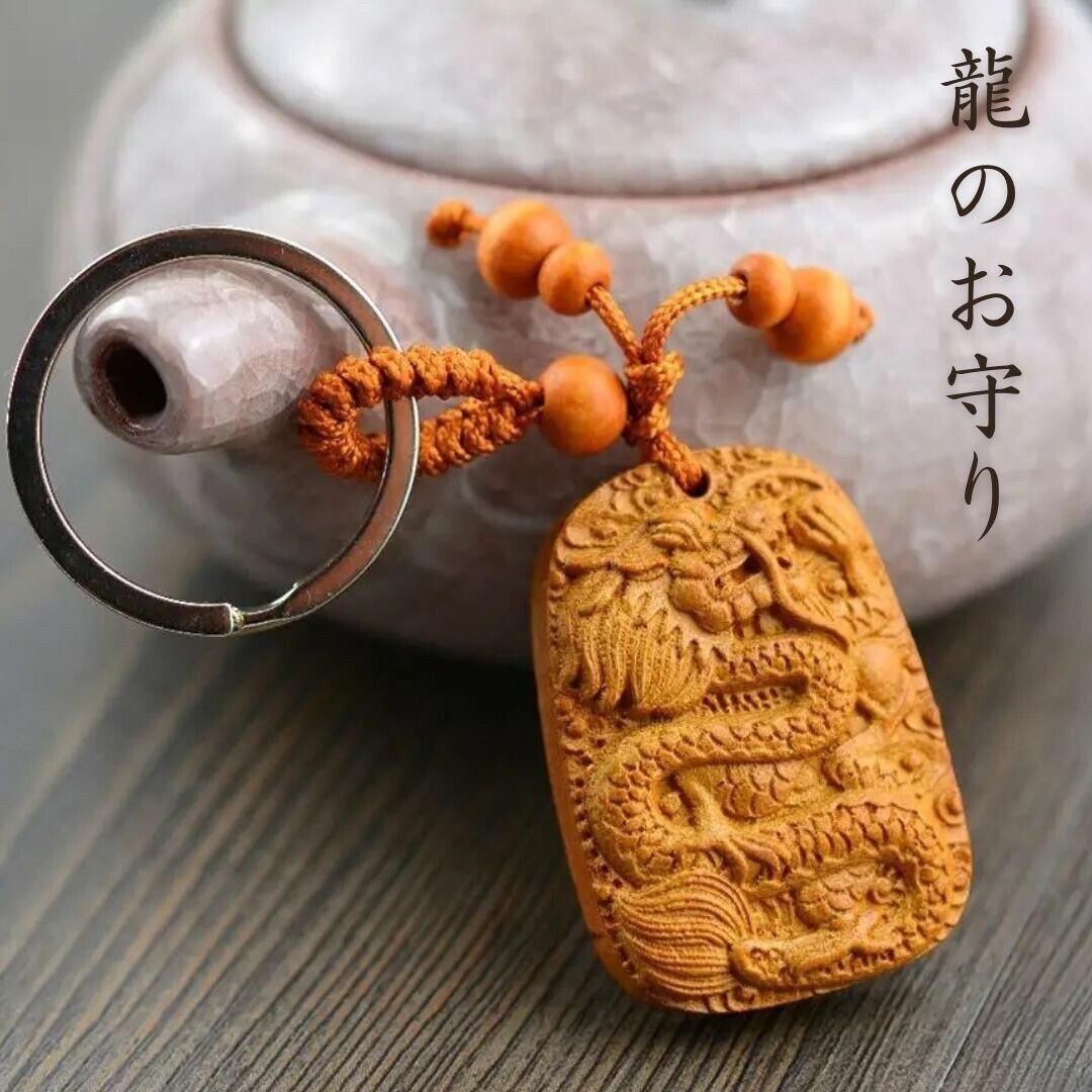 キーホルダー 龍のお守り 木製 ラッキードラゴン 風水 干支 アクセサリー コイン 吊り下げ おしゃれ