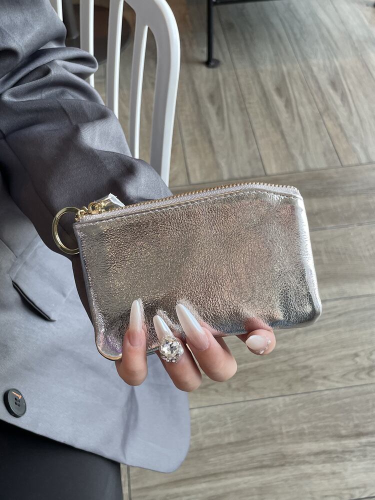 本革 コインケース 小銭入れ キーリング付き ミニ財布 シルバー レディース 上品 ファッション