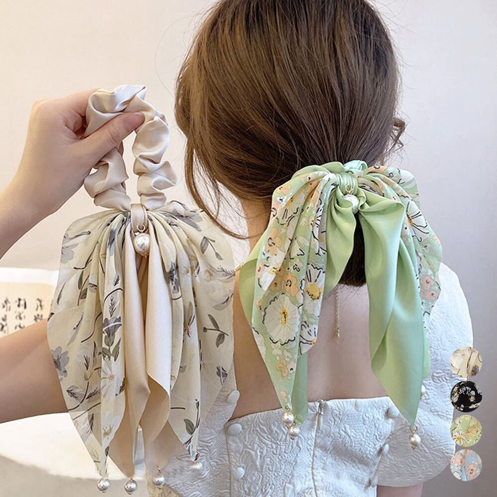 花柄 スカーフシュシュ春夏リボンヘアゴム