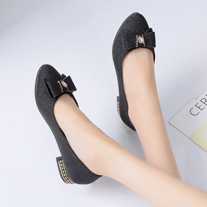 初回送料無料 レディース パンプス ミュール 靴 ポインテッドトゥ リボン フラット キラキラ