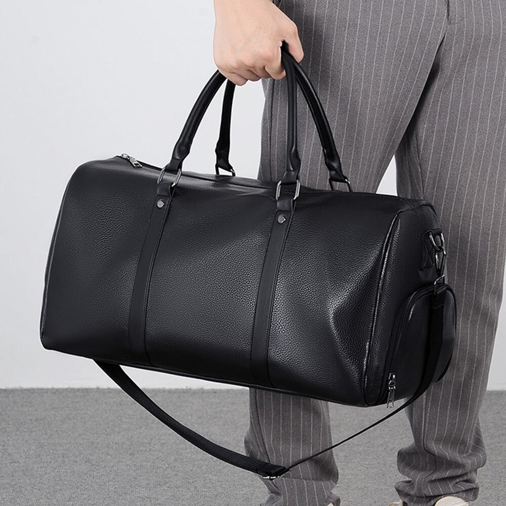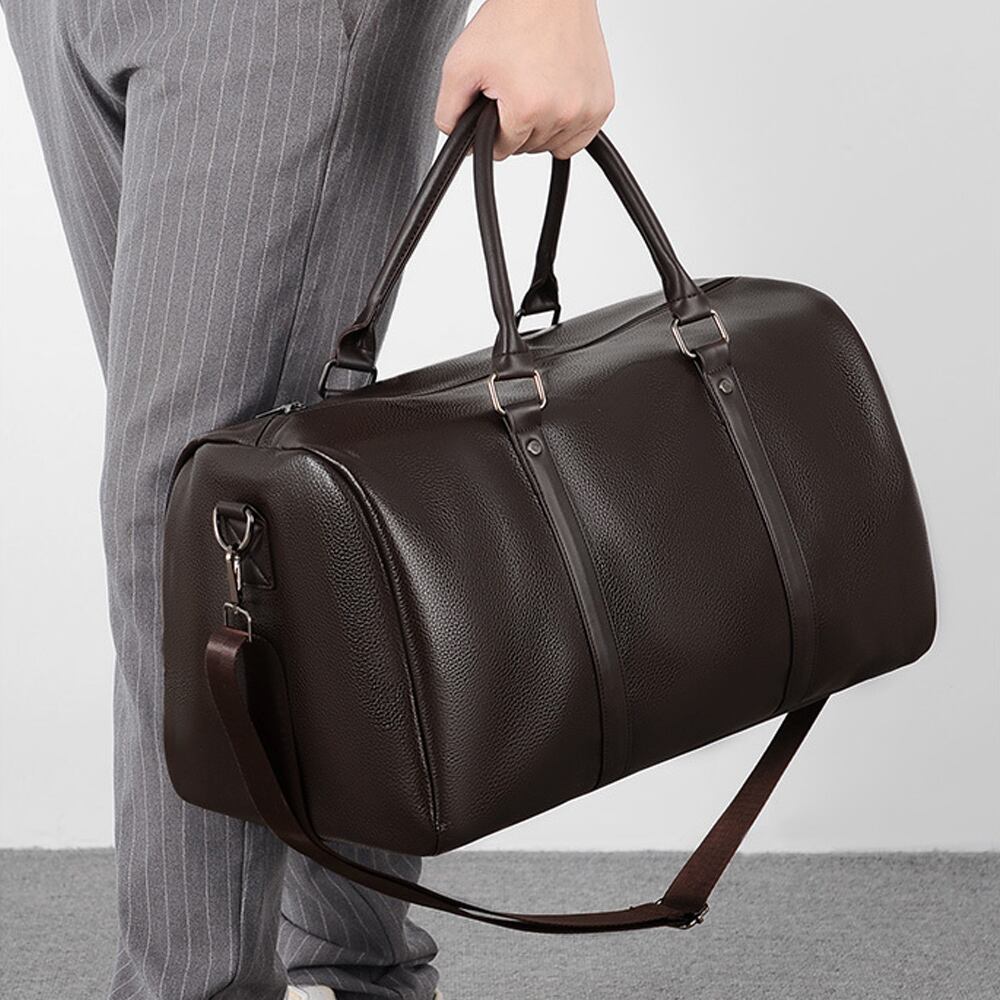 滑らかで上質なレザー生地で仕上げた大きめのトラベルボストンバッグ