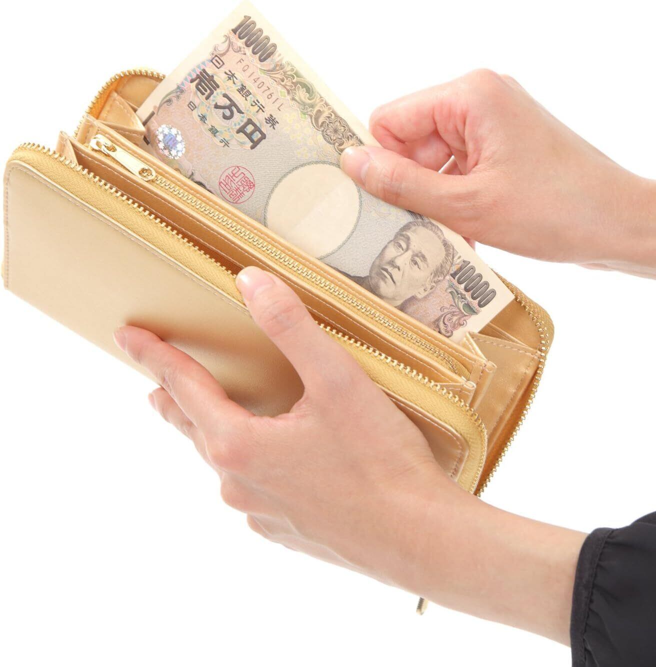 金運財布 レディース長財布 小銭入れ付き 風水 ゴールド 開運 ラウンドファスナー YKK 牛革 本革