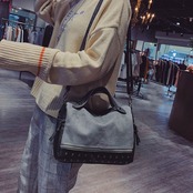 PUレザーとスエードタッチスタッズ装飾コンパクトショルダーバッグ