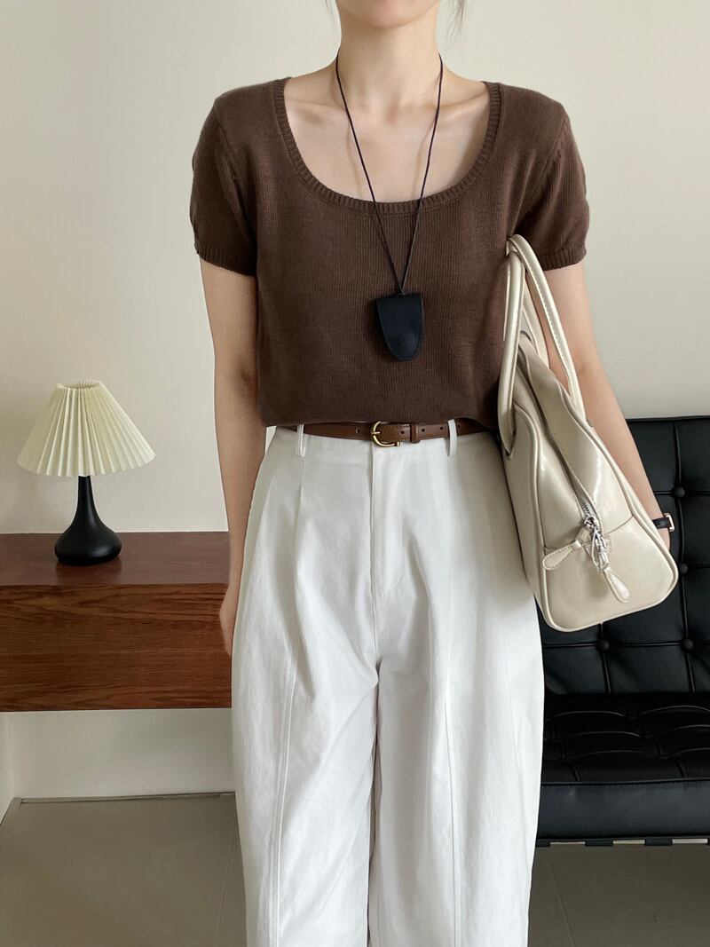 u25205 レディース トッブス シャツ Tシャツ 無地 ニットウェア