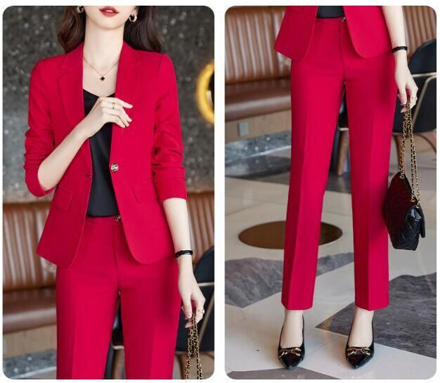 通勤やビジネスシーンに最適!レディースーツ OLスーツの登場です! このビジネススーツは、フォーマルな場面でも自信を持って着用できるデザインが魅力。面接や重要な商談にもピッタリです。着心地の良さとシルエットの美しさを兼ね備えた、女性に嬉しいアイテムです。