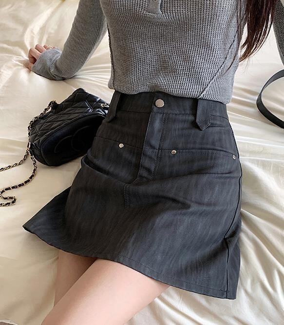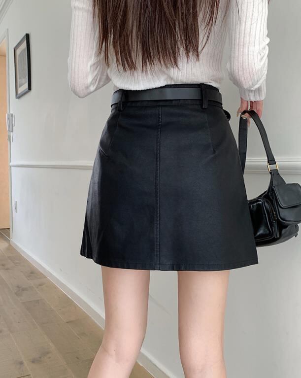 2024秋冬新作 ボトムス 女 レディース ハイウエスト PU ミニスカート タイトスカート