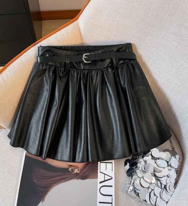 2024春秋新作 ボトムス 女 レディース ハイウエスト PU ミニスカート プリーツスカート