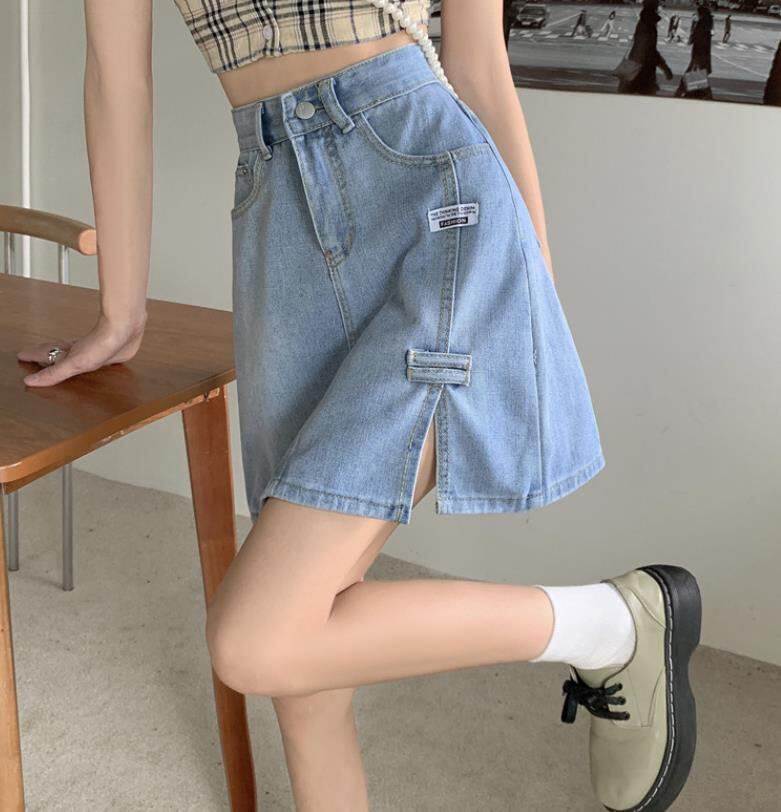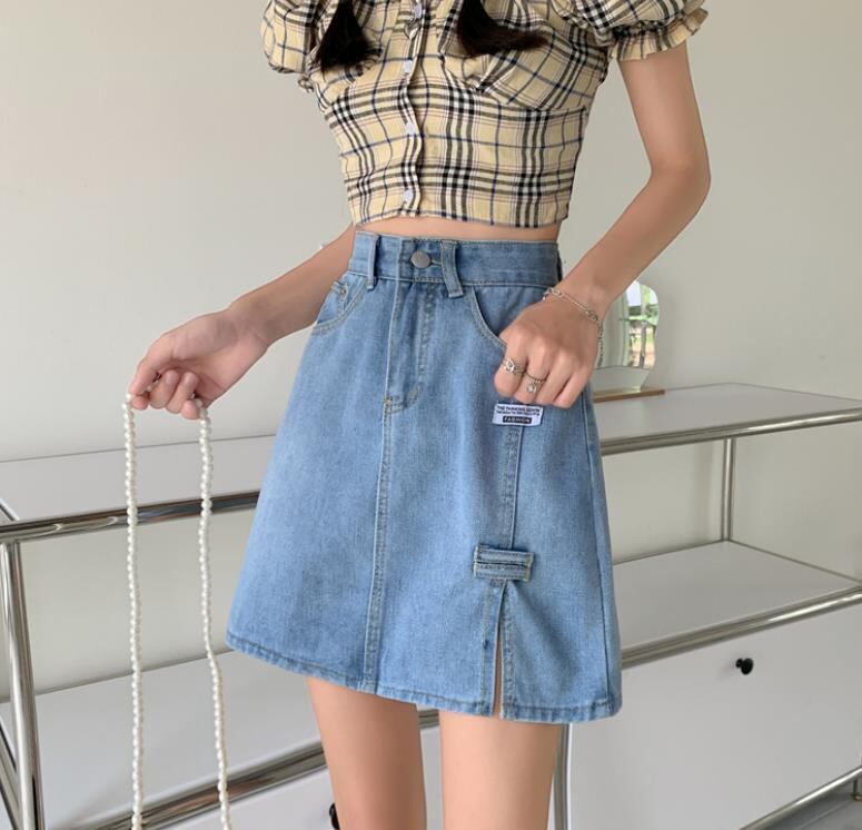 ボトムス 女 レディース ハイウエスト 無地 デニム ミニ スカート 台型スカート S-L