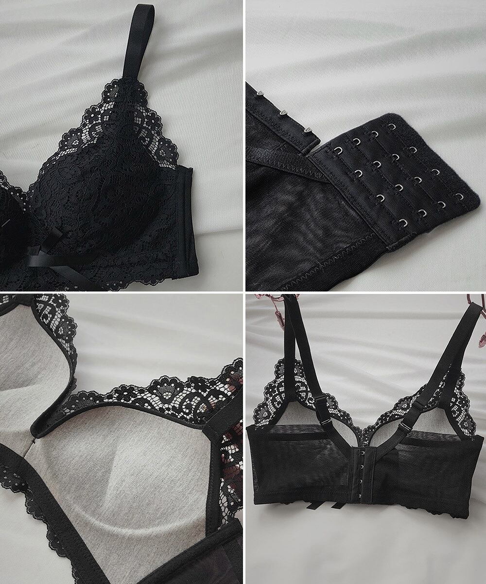 ブラジャーショーツセット フロントリボン バスト盛れる レースブラショーツセット 小胸超盛り 脇高 脇スッキリ 女性下着