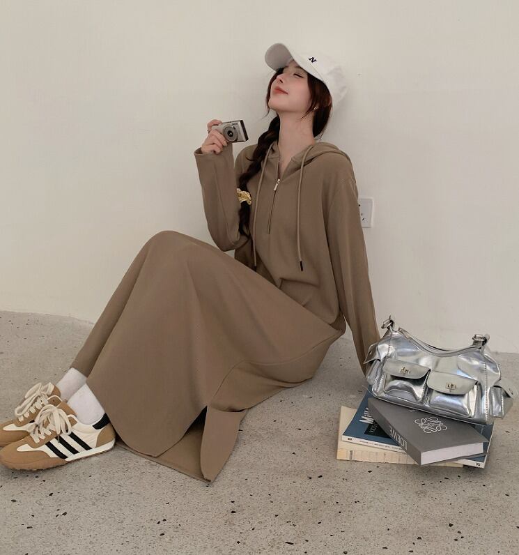 大きいサイズL-3XL】【秋冬新作】ファッションワンピース♪ブラック/ブラウン2色展開◆
