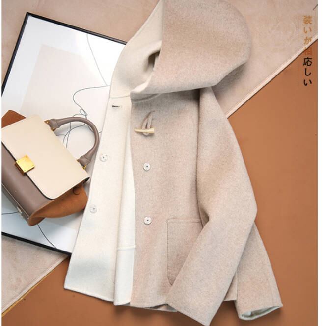 商品名:フランス風手縫い両面ツイードジャケット フード付きウールコート 短丈 2024 ウールコート レディース