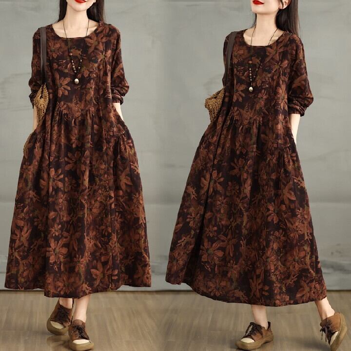 新作レディースファッション ★長袖ワンピース 綿麻風ワンピース★