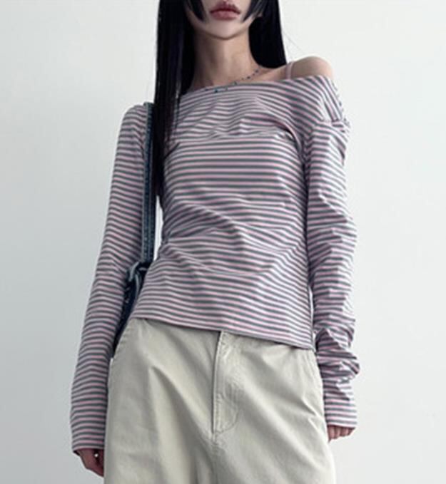 2024春秋新作 レディース 女 長袖 ボーダー柄 Tシャツ トップス インナー