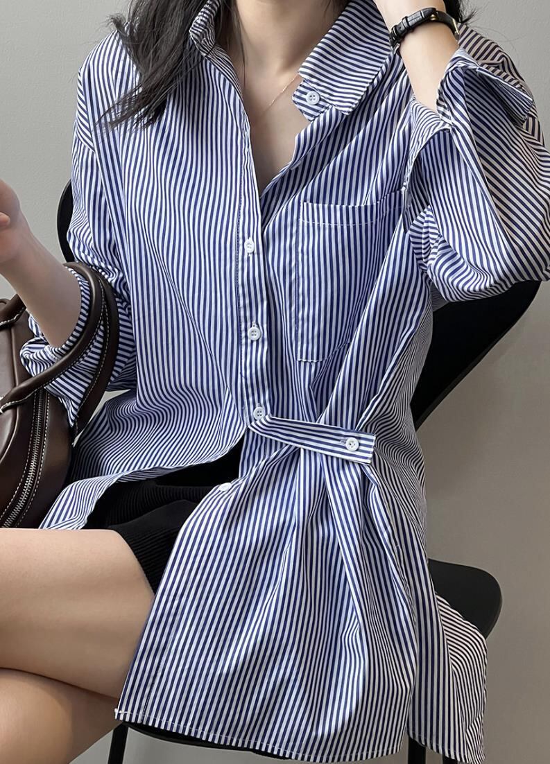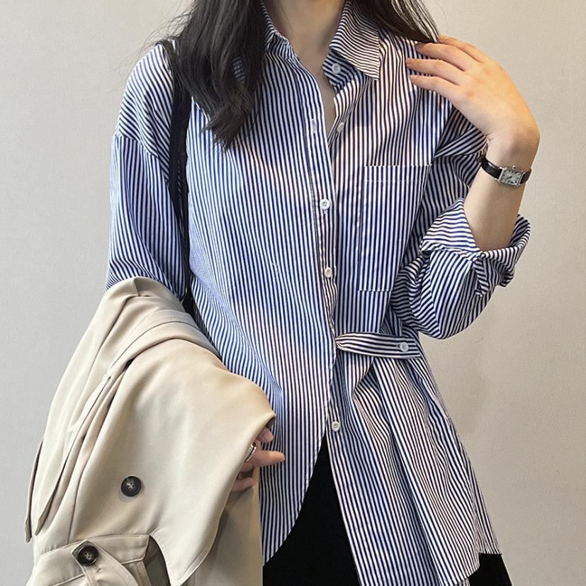 レディース トッブス ワイシャツ 長袖 2024秋新作 フランス シャツ ボーダー 韓国風