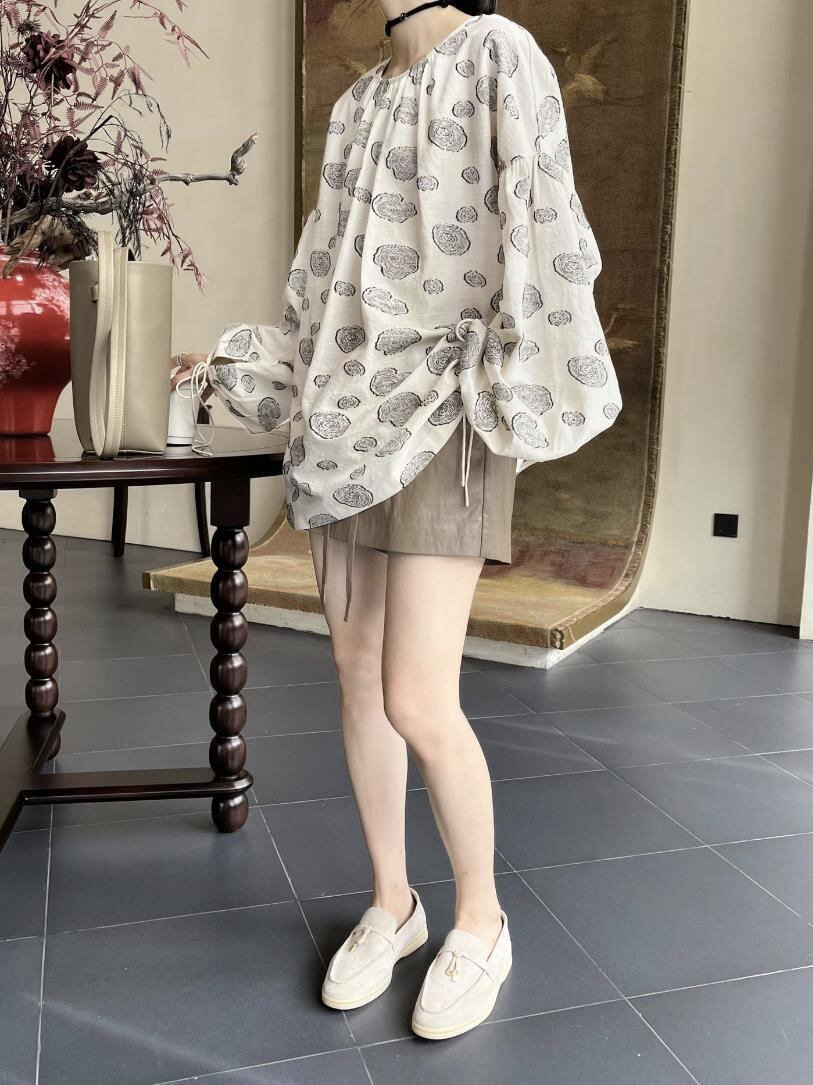レディース トッブス シャツ ブラウス 長袖 2024秋新作 プリント ロング丈